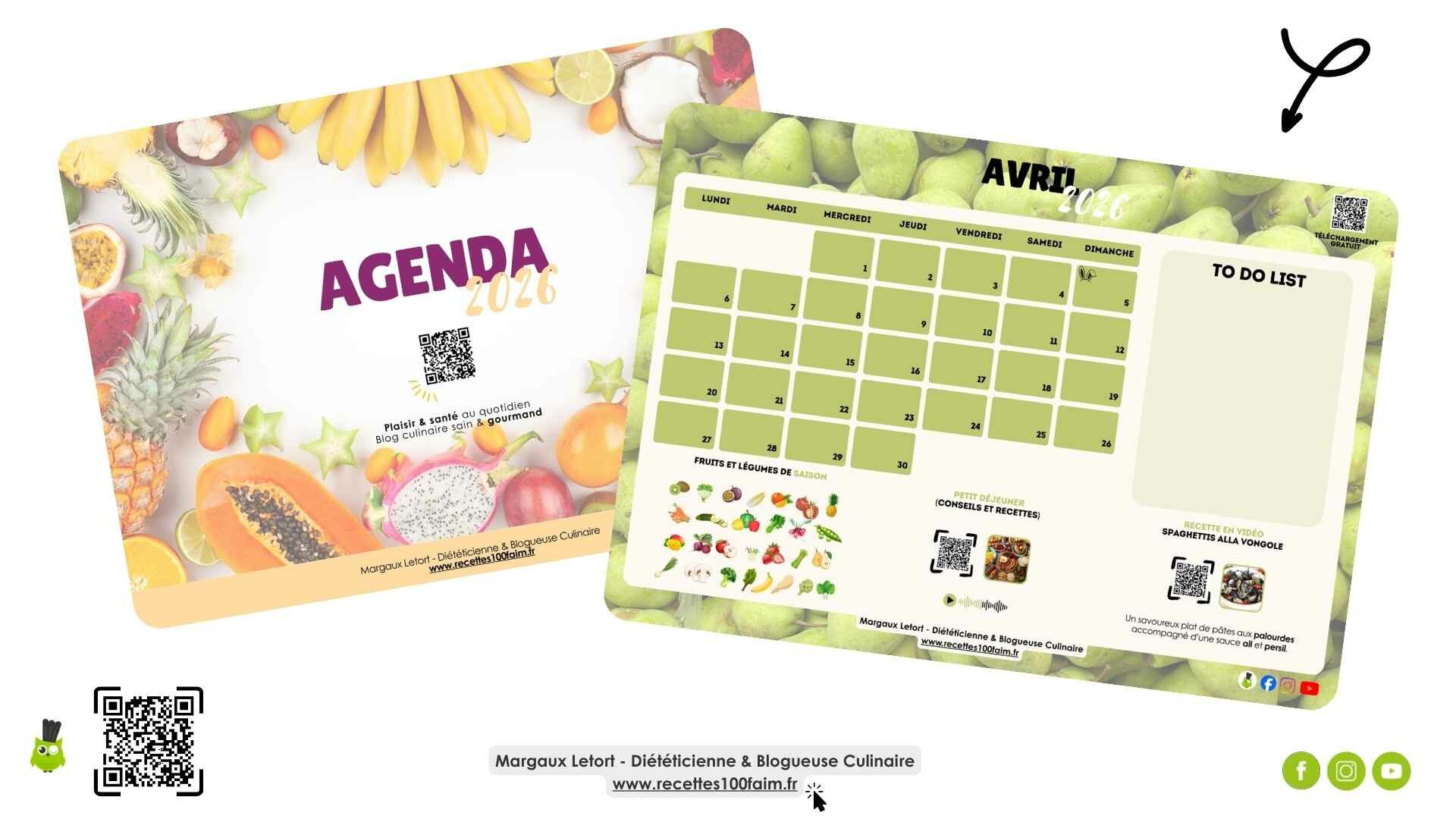 Télécharger mon agenda gourmand 2026 : une page par mois, fruits et légumes de saison, to-do list, podcast santé et recettes de saison
